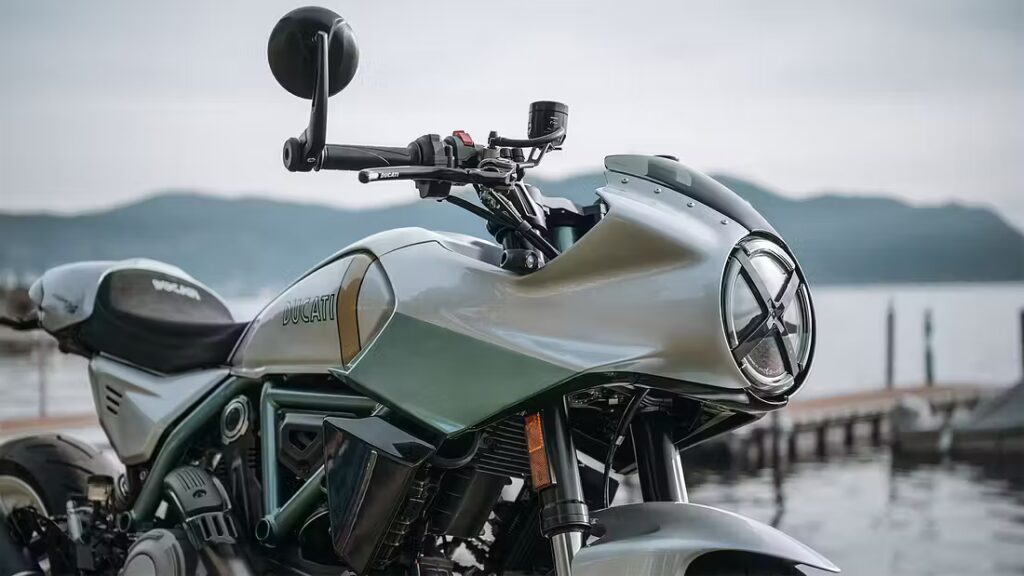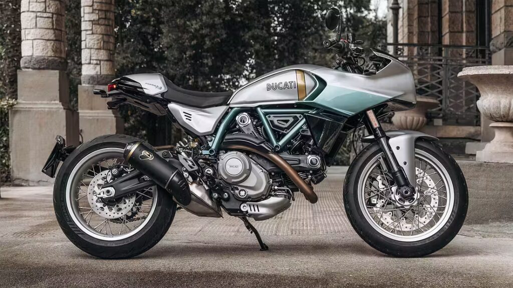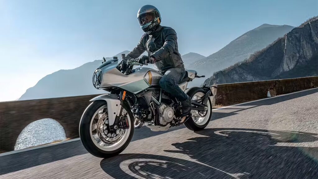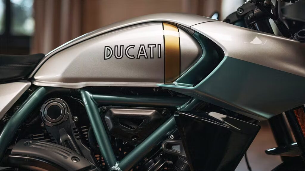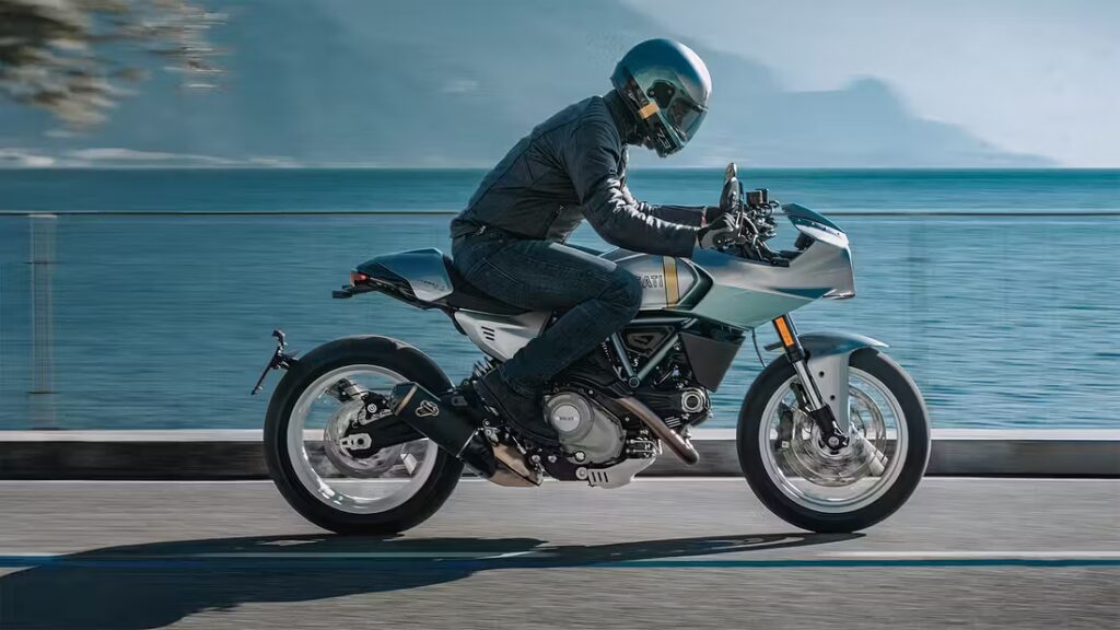 Ingen extra färgval – men Ducati erbjuder en matchande retrohjälm och jacka som tillval.