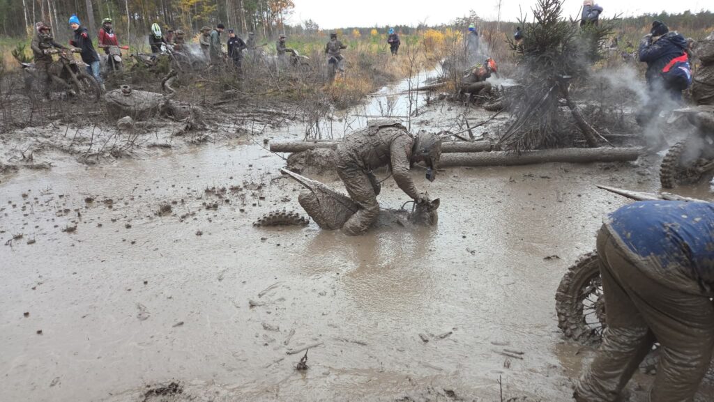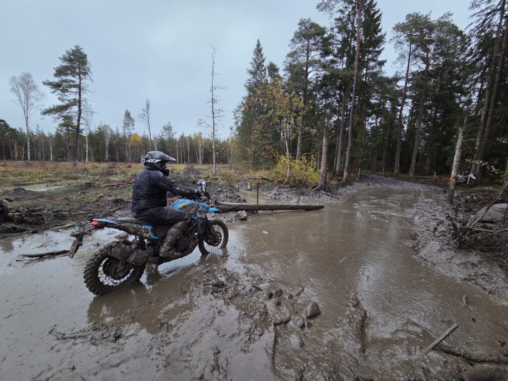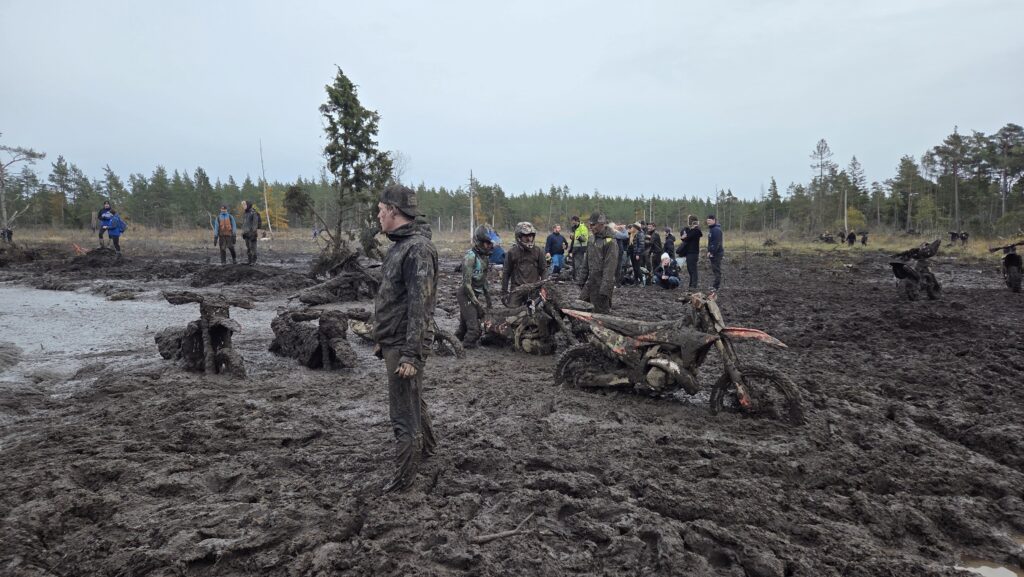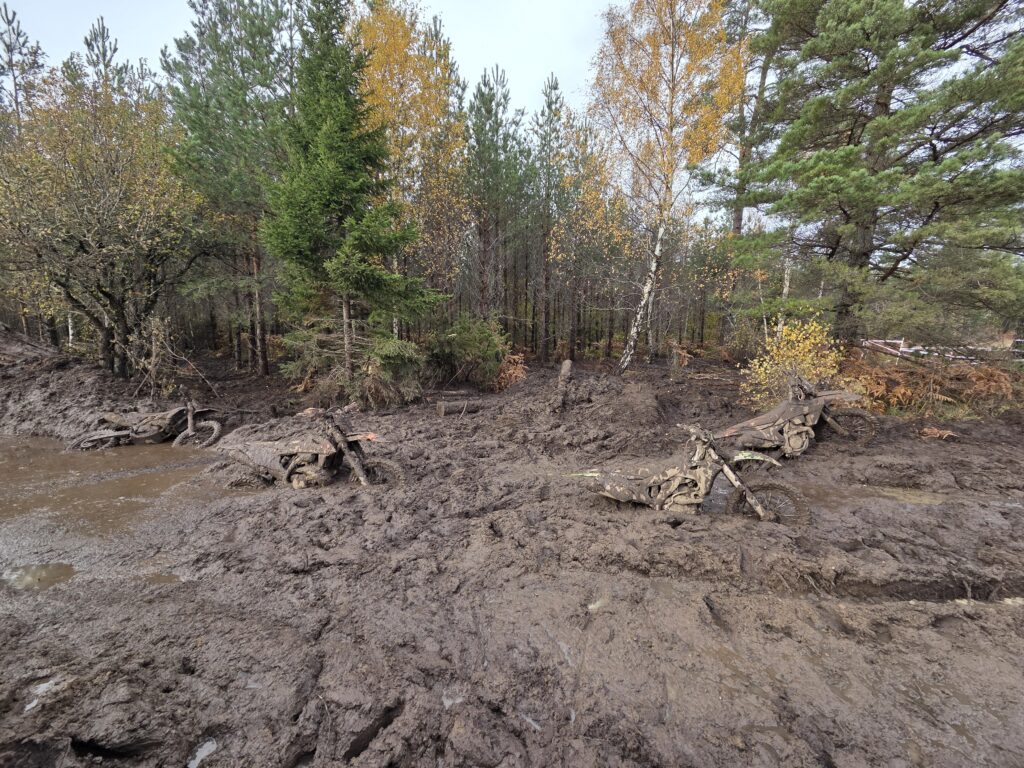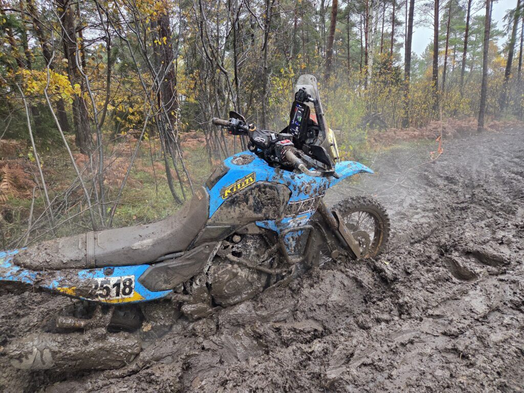 Körde fast två gånger under tävlingen men lyckades få hjälp av andra deltagare och åskådare att dra loss. Äventyrshojarna är något lägre än enduromaskinerna vilket gör att de blir lite svårare i djupa spår.