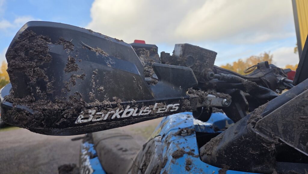Handskydd i form av Barkbusters är helt avgörande för att ta sig igenom dessa krävande tävlingar. De skyddar inte minst både kopplingsgrepp och frambromsgrepp från skador då man lägger hojen.