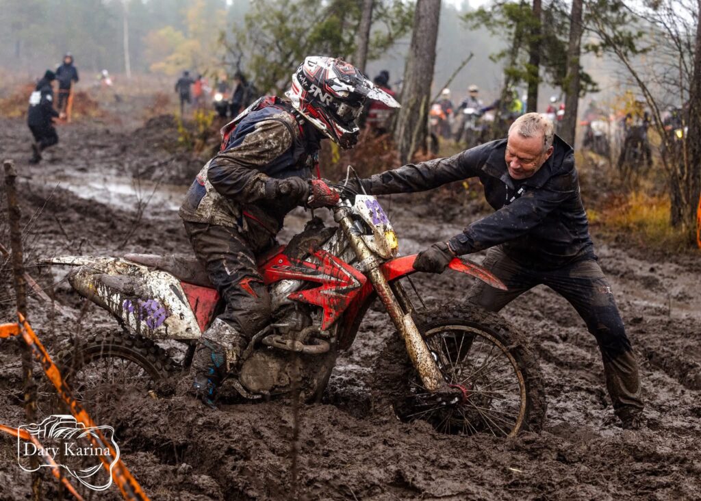 Dagens motionslopp på Gotland Grand National bjöd på extrema utmaningar för deltagare och funktionärer. Ihållande regn och en ny bana gav några riktiga surhål som aldrig tycktes ta slut. Kolla bilden ovan, en VD som drar loss hojar ur leran, RESPEKT!