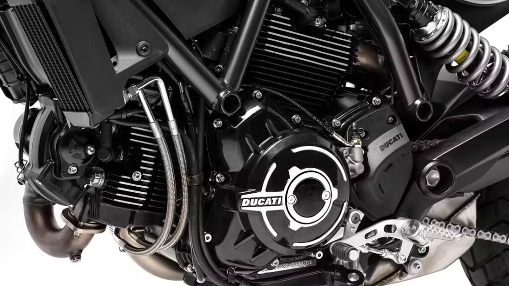 Den här traditionella V-twinnen får den desmodromiska ventilstyrningen som är märkets signatur, två ventiler per cylinder och klassiska kylflänsar. Namnet Formula 73 anspelar sannolikt på sportiga Ducati-modeller och racingframgångar från 1970-talet.