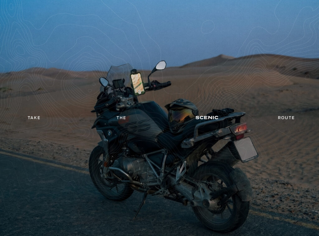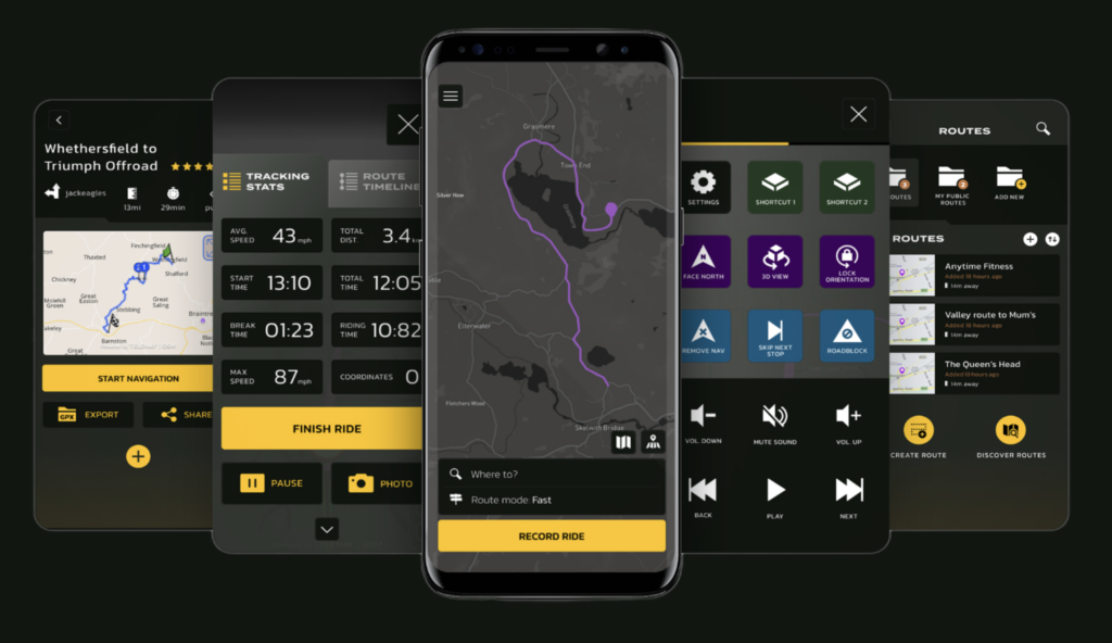 Gränssnittet är anpassat för hojåkning, med en “quick actions”-knapp tänkt att fungera även med handskar. Hela färgschemat går att anpassa och i appens forum delar användare med sig av sina egna teman. – en ovanlig detalj i navigationsammanhang som ger appen en tydlig personlig prägel.