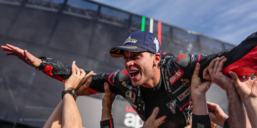I Portugal var det Marco Bezzecchi (Aprilia Racing) som ledde från start till mål under de 25 varven. En viktig seger tog honom närmare tredjeplatsen totalt i mästerskapet, även om han fortfarande behöver några poäng för att säkra den nästa helg i Valencia. Bakom italienaren på banan motstod Alex Marquez (Gresini Ducati Racing) en sen attack från Pedro Acosta (Red Bull KTM Factory Racing).